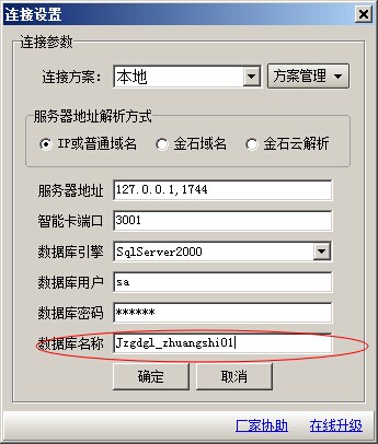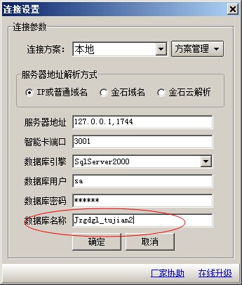 3. 還原完成,修改軟件客戶端連接方案里面的數(shù)據(jù)庫名稱,這樣就擁有了兩套一模一樣的帳套。修改其中一套的內(nèi)容,另外一套并不會發(fā)生變化。