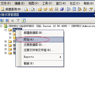 二、正式版Sql2000、Sql2005、Sql2008數(shù)據(jù)庫有兩種方法,第一種與迷你Sql2000相同備份后再還原,第二種是復(fù)制數(shù)據(jù)庫文件后,重新附件數(shù)據(jù)庫。
