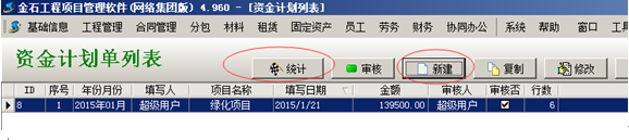 是在資金計(jì)劃列表中,找到相應(yīng)的資金計(jì)劃單,然后點(diǎn)【統(tǒng)計(jì)】按鈕,就會彈出對應(yīng)的統(tǒng)計(jì)表。如下圖: