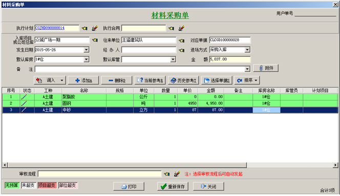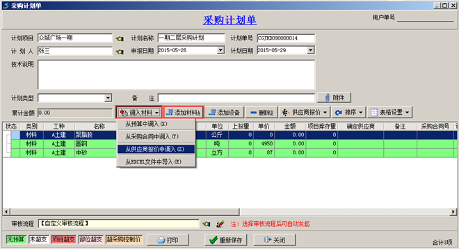 工程項目管理軟件材料采購流程