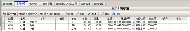 第三步,選擇完成之后會將信息調(diào)入到合同內(nèi)容明細中,如圖