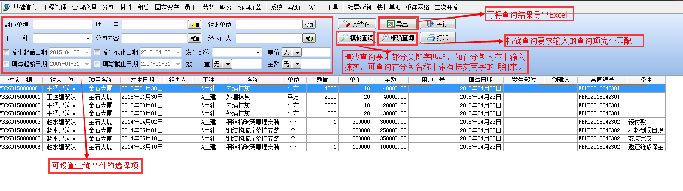 四.工程項(xiàng)目分包管理中各種相關(guān)查詢。