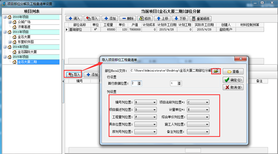 所有部位依此填寫。或者使用“導入”功能,把清單依次導入。