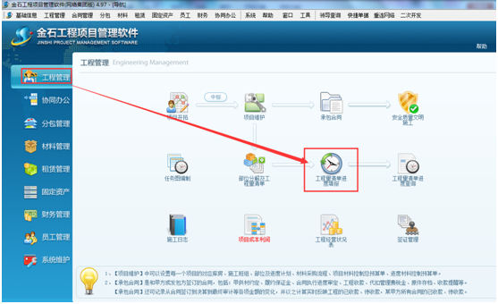 進入系統的“工程管理”模塊,點擊“工程量清單進度查詢”,如圖: