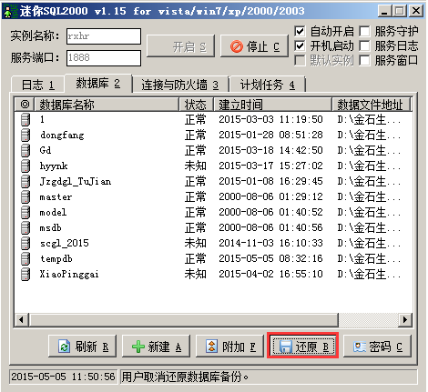 系統自動還原數據庫,成功后系統提示還原數據庫成功,點擊確定。