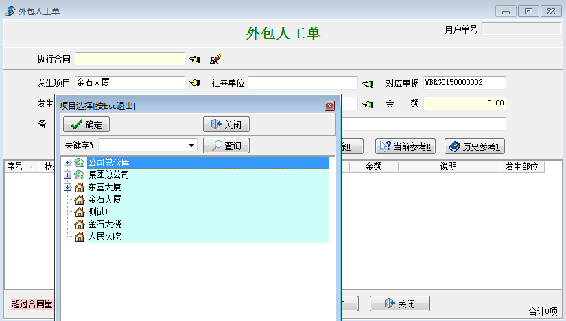 設置項目隱藏后查看單據列表,我們以外包人工單為例,如下圖