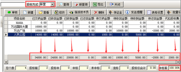 也可根據(jù)投標(biāo)方式、業(yè)務(wù)員、項(xiàng)目狀態(tài)查詢。