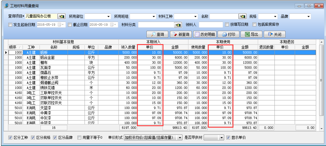⑴.庫存查詢和用量查詢以不含稅單價和金額統計。如下圖: