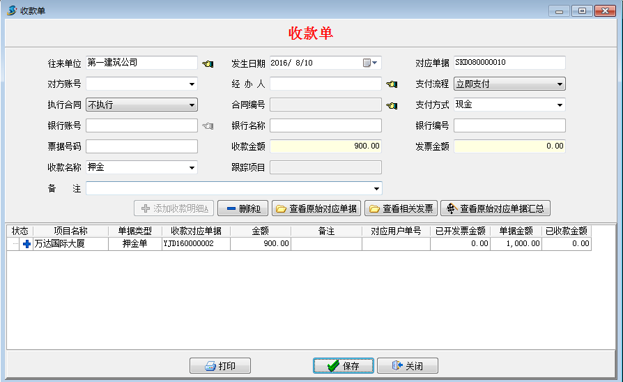 金石工程項(xiàng)目管理軟件押金管理的整體流程: