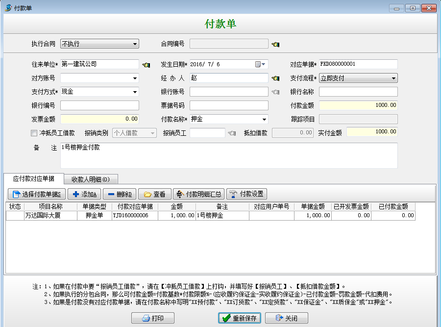 1.建立押金單、押金提醒(導(dǎo)入附件)->審核確認(rèn)(支持多級(jí)審核)