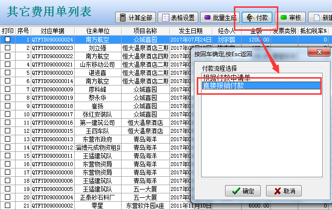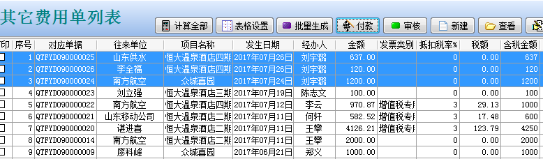 在工程項目管理軟件中如果某個員工在多個項目任職,又有多個往來單位都產(chǎn)生業(yè)務(wù)往來,都要進(jìn)行報銷付款(沒有對應(yīng)合同的前提下),按住ctrl鍵選擇待付款的單據(jù)(需單據(jù)的經(jīng)辦人是相同的)