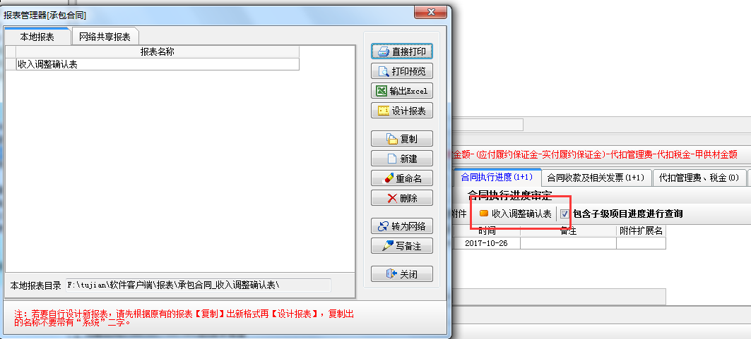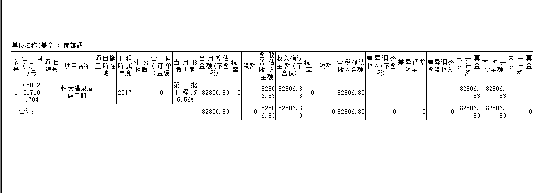 四、填寫“承包合同”執行進度,對應工程結算清單,(下圖)“進度申報金額”就是在工程結算單中填寫的暫估收款金額,“進度審定金額”就是報給甲方審定后的最終收入金額