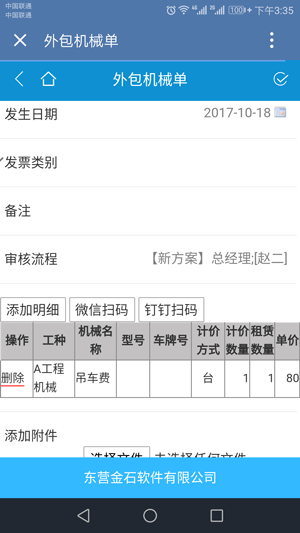 業(yè)務(wù)單據(jù)支持外掛附件的功能,通過PC終端連接高拍儀、攝像頭拍照或手機在錄單時拍照等方式生成的照片存到單據(jù)附件中。比如可將現(xiàn)場供應(yīng)商到貨清單、產(chǎn)品質(zhì)量合格證拍照,存到單據(jù)附件中。還可以將一些證件、合同原件資料掃描或拍照存到軟件中,方便以后在PC終端或移動終端查閱。