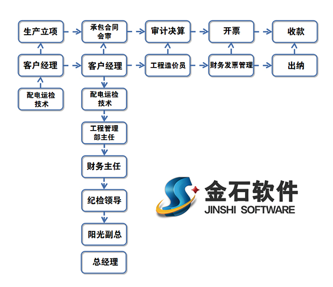 金石軟件工程師通過陽光電力公司相關領導的詳細溝通后,結合實際情況,對陽光電力管理流程進行了全面的梳理,操作方案流程如下: