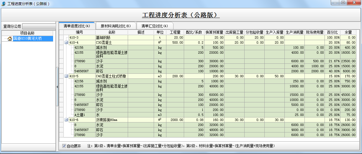 在施工進(jìn)度計(jì)劃的基礎(chǔ)上,即(工作部位分解)的基礎(chǔ)上,編制材料需求計(jì)劃、建立材料成本維護(hù)、材料加工清單、材料出庫(kù)單或調(diào)撥單關(guān)系明細(xì),產(chǎn)生詳細(xì)的進(jìn)度比較和詳細(xì)的歸納比較。