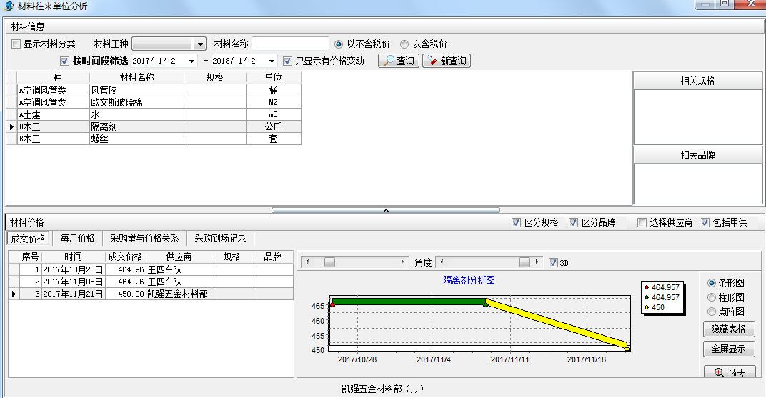 供應商數據庫、材料、設備數據庫和價格數據庫是公司不可或缺的資源。然而,如何利用大量的信息來降低采購成本,反映采購部門的績效,是每個采購主管需要解決的緊迫問題。根據供應商在系統集成項目管理軟件中的查詢、材料交易價格分析圖、如果采購合同未到達,請在一定時間內檢查材料價格調整和采購合同執行情況,并實時提示。