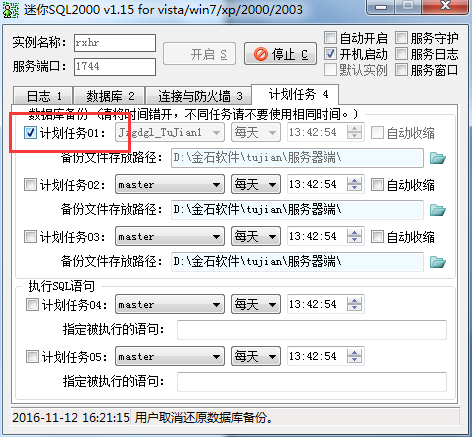 2、自動備份:選擇計劃任務(wù)→添加備份的數(shù)據(jù)庫和日期
