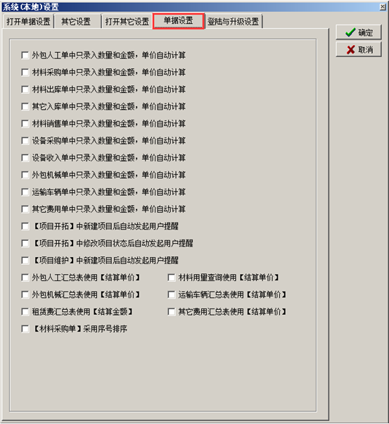 進入系統的“系統維護”-“系統全局設置”彈出系統全局設置的對話框,點擊“合同設置”,在對應的復選框打鉤代表合同受對應開關的控制,如圖: