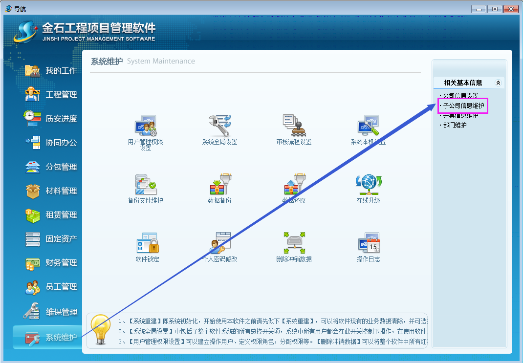 點(diǎn)擊【系統(tǒng)維護(hù)】-【子公司信息維護(hù)】