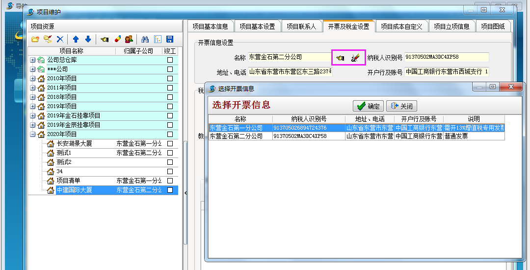3、項(xiàng)目維護(hù)設(shè)置歸屬子公司后會(huì)自動(dòng)帶入開(kāi)票信息。