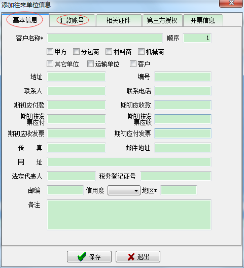 在工地項目管理系統左側選好分類,然后點新增新建往來單位,填好往來信息即可。(也可以對建好的往來單位進行修改,刪除操作,其中帶*的為必填項)