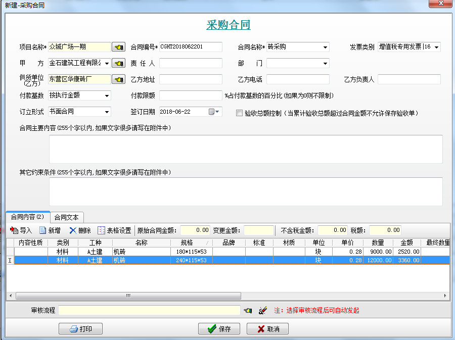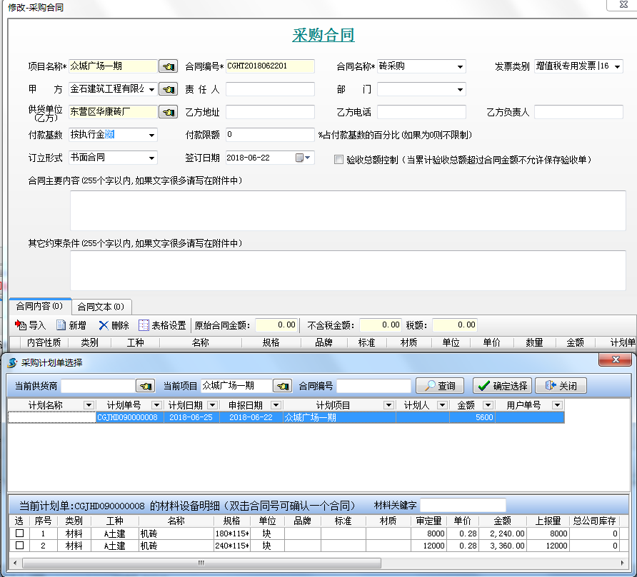 第二步,新建合同時可以從采購計劃選擇合同內容明細。