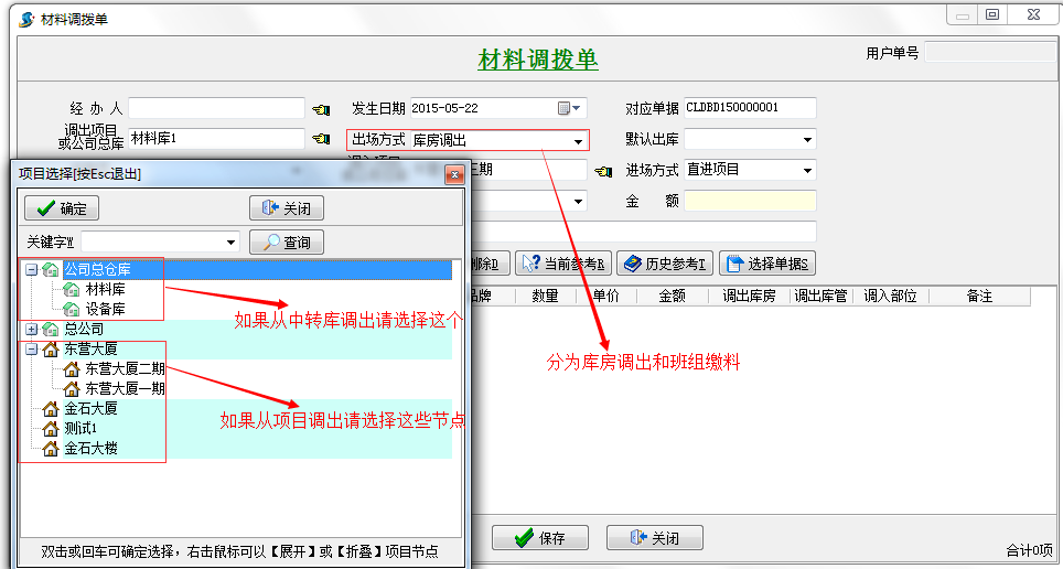 點擊主菜單【材料】->【材料調撥單】->【新建】打開界面如下: