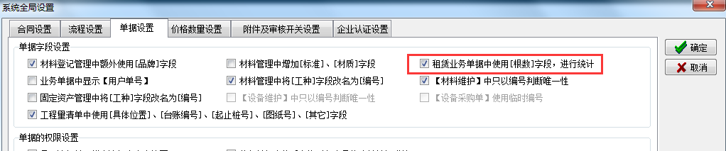 1、在【系統全局設置】的【單據設置】中,有一個開關在租賃管理中,特別是在結算統計時非常有用,這里做特別說明。如下圖所示