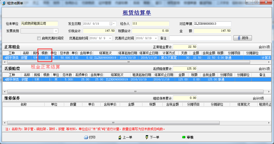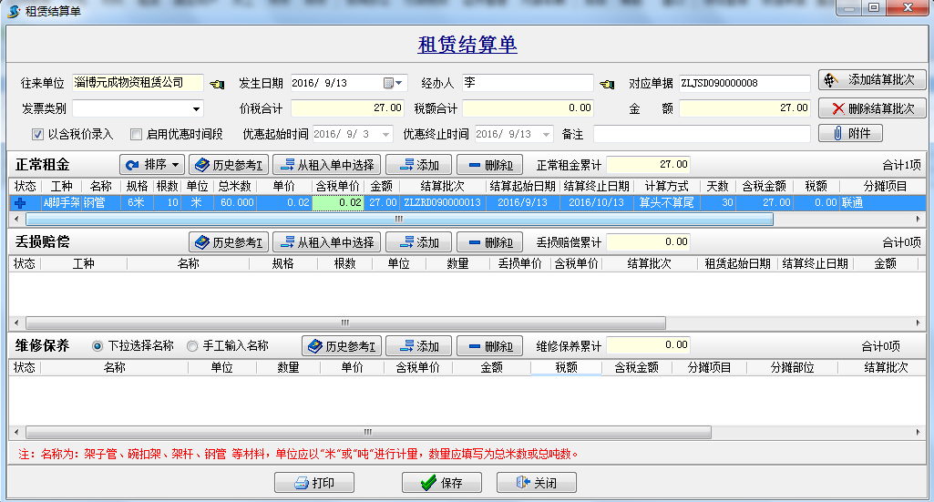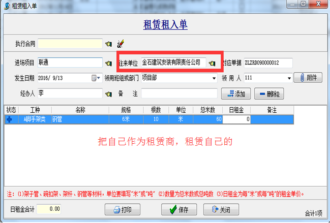 例二、工程項(xiàng)目管理軟件中自己沒有鋼管,直接賠錢給租賃商