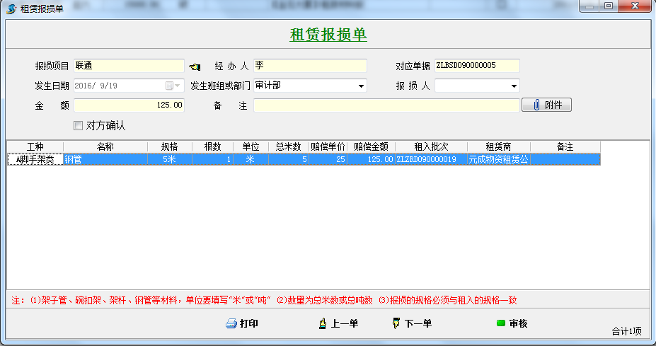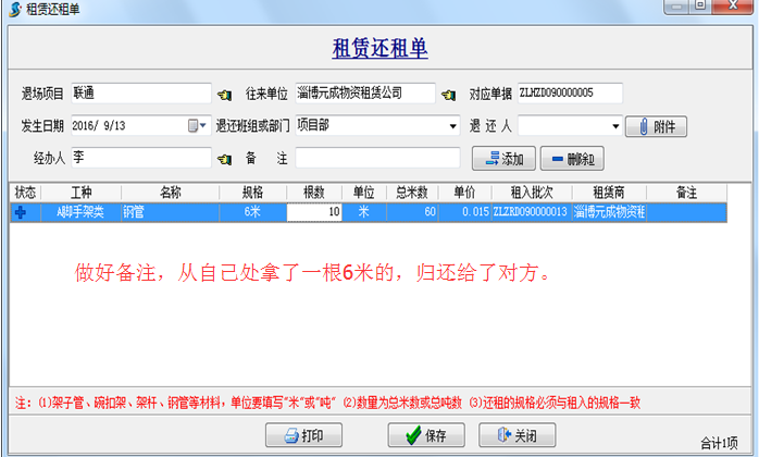 工程項(xiàng)目管理軟件在租賃過程中經(jīng)常會發(fā)生以下情況:如租賃十根6米的鋼管,使用過程中有一根因?qū)嶋H需求損耗了0.5米 需要給予對方賠償