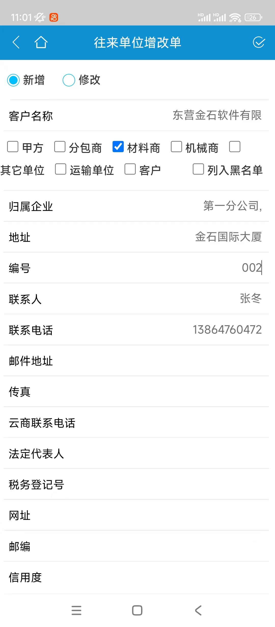 同樣手機功能中也可以填寫或者審核往來單位增改單