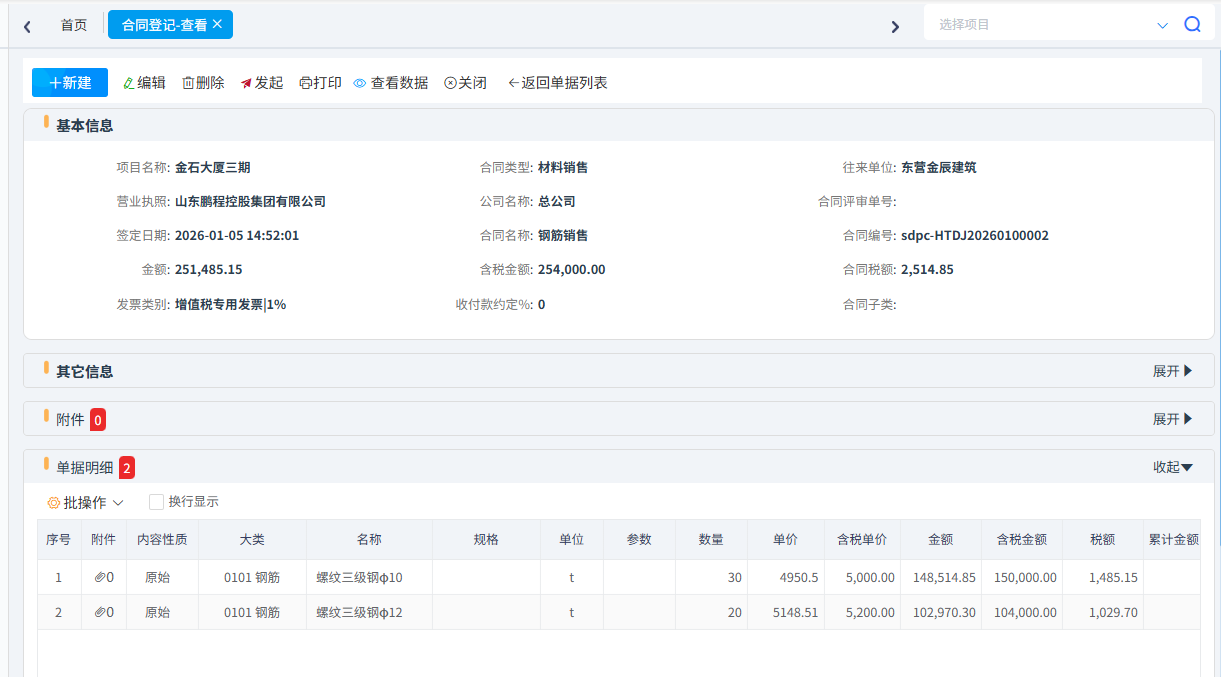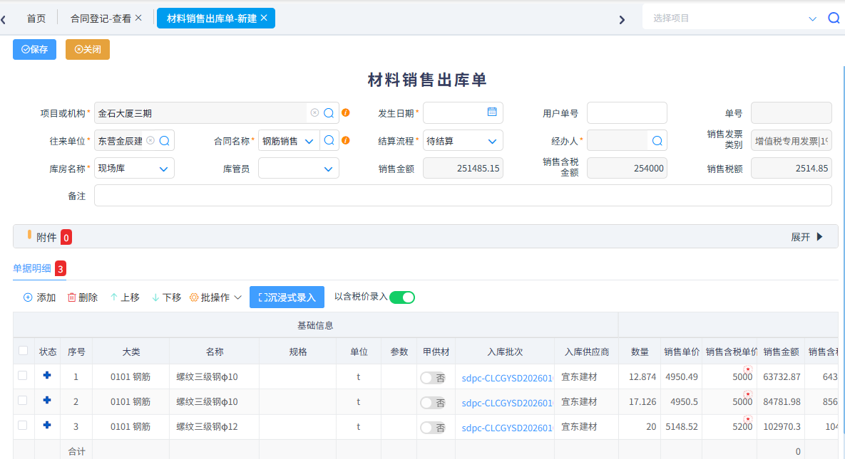 針對系統集成、市政路橋等行業有銷售業務可以填寫銷售合同,根據銷售合同生成材料銷售出庫單、材料銷售結算單。