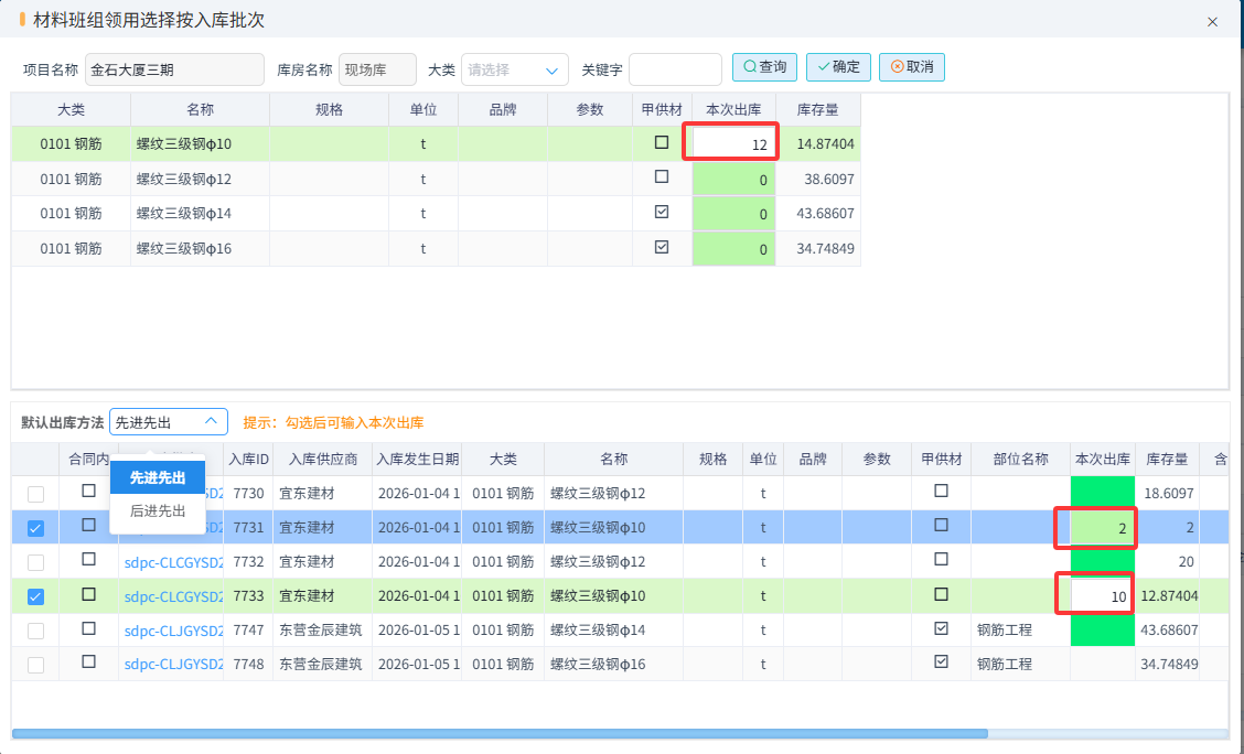在領用甲供材時會自動標記
