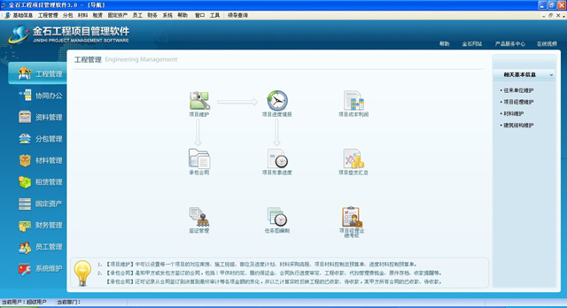 工程項(xiàng)目管理軟件界面順利完成改版,并更名為“金石工程項(xiàng)目管理軟件”。現(xiàn)軟件已升級到3.0以上版本,請廣大新老客戶下載升級使用!