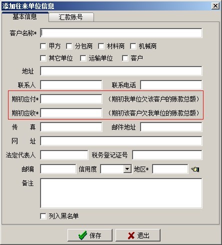其中在往來單位維護(hù)中可以設(shè)置期初應(yīng)付應(yīng)收賬款。如下圖: