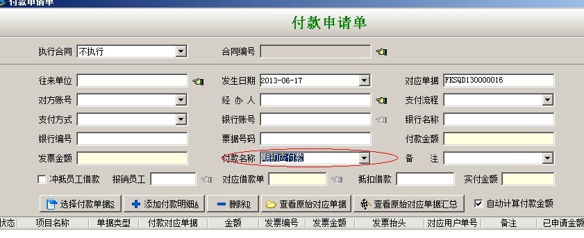 如果要支付期初欠款,要到財(cái)務(wù)模塊中直接新建付款申請單或付款單,然后在收款名稱里選擇期初應(yīng)付。如下圖: