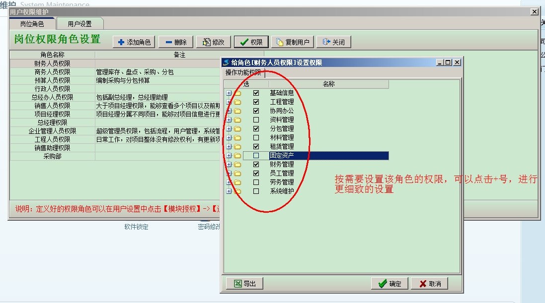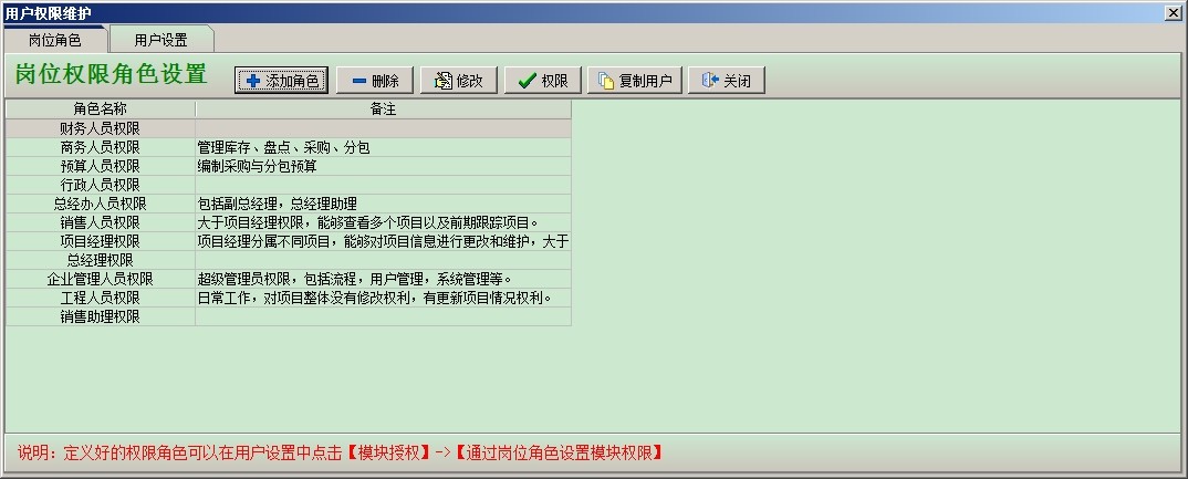 2、按崗位角色設置用戶權限(注:使用集團版多級審核的企業必須用本方法設置權限)。