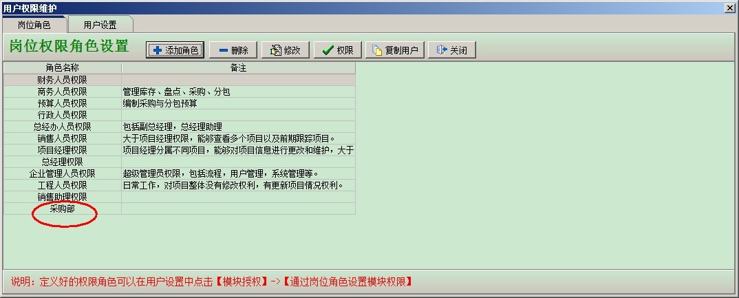 其他人員同樣的設置,對于相同部門權限相同的人員賦予同樣的角色即可。