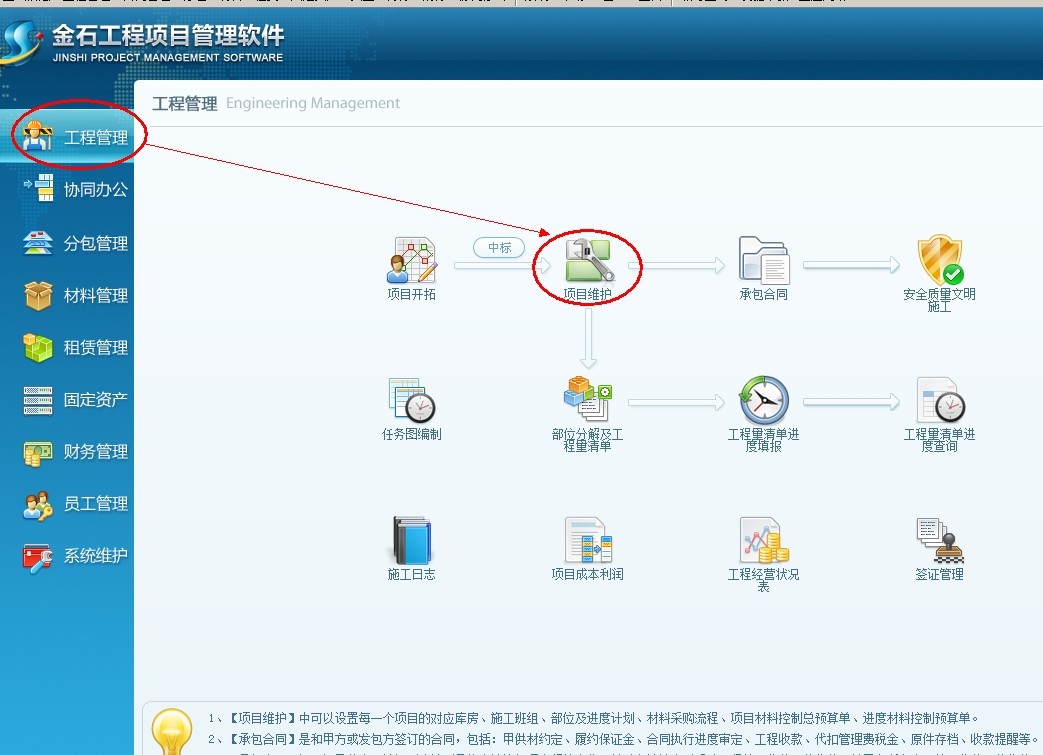以公司的“市場部”或“銷售部”來進行前期費用的承擔。如果項目沒有中標,則前期跟蹤費用自然歸屬到該部門下,如果中標通過在【項目維護】中新建項目,從項目開拓中引入,并確認結轉費用即可。