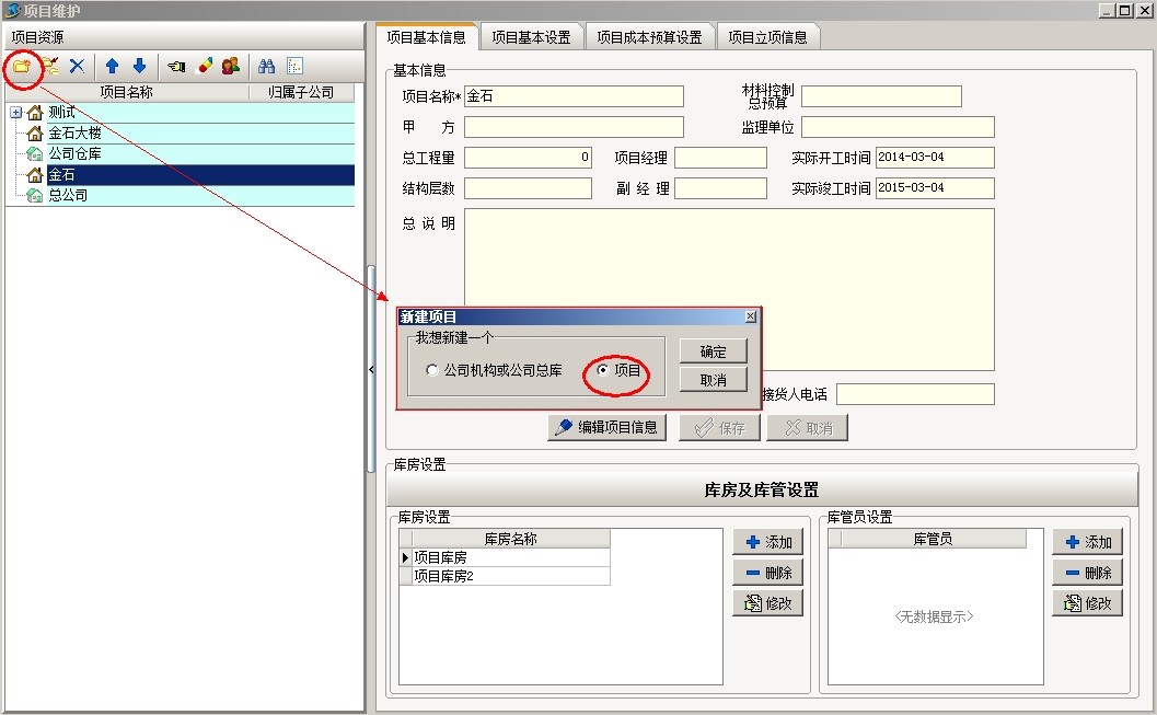 1、項目立項后,首先到【項目開拓】新建項目,注意選擇項目相應的狀態(必須為招標前),然后錄入項目的基本信息,如下圖: